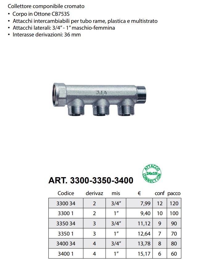 COLLETTORE COMPONIBILE FAR 3/4" QUATTRO VIE CROMATO ART.340034